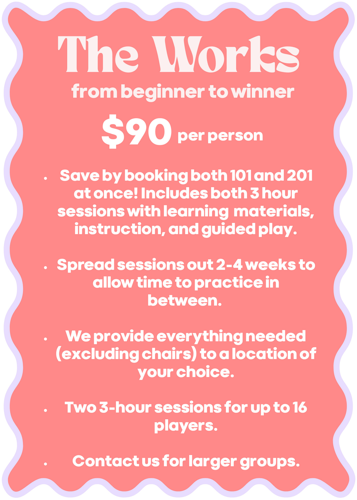 Open Play EVENT- no insrutuction will be given at the event.